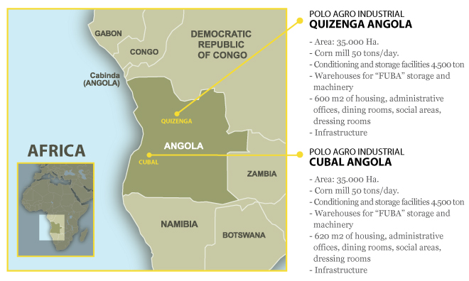 Internationally, CyG has promoted and provided technical direction of “Polo Agroindustry Malange” and “Polo Agroindustry Benguela” projects, both in Angola. |