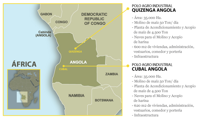 Internacionalmente, CyG ha desarrollado la puesta en marcha y gerenciamiento técnico de la ejecución de los proyectos “Polo Agroindustrial Malange” y “Polo Agroindustrial Benguela”, en Angola.